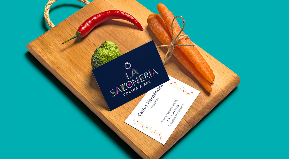 De Buen Sazón a La Sazonería hay muchos años de historia. El uso diferenciado de la palabra sazón permitió mantener la esencia de su origen. Con un tratamiento de formas simples y coloridas se quiere representar la variedad de platillos, ingredientes y condimentos que conviven en este negocio familiar.
